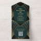 Invitation Tout En Un Code QR - Mariage Art Déco Vert et Or sophistiqué