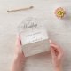 DISPONIBLE AVEC OU SANS CODE QR OU OPTIONS DE SÉLECTION DE DÎNER. Ce design se compose d'un simple arrière - plan en marbre bronzé sous une douce couverture blanche et transparente. Le rabat arrière affiche les initiales de la mariée et du marié. Simple et élégant. Créé par Simply Farmhouse Press.