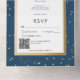 Invitation Tout En Un Code QR moderne bleu et blanc étoile or