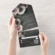 Invitation Tout En Un Code QR moderne floral blanc & charbon foncé