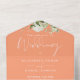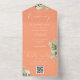 Invitation Tout En Un Code QR Monogramme Floral de Verdure de Pêche Mari