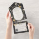 DISPONIBLE AVEC OU SANS CODE QR À ANALYSER. Ce design présente un cadre fleur sauvage doux autour d'un ovale crème sur un arrière - plan noir doux. Ajoutez une URL de code QR à votre invitation afin que les clients puissent accéder rapidement à votre site Web mariage pour obtenir des détails, des directions, des options de menu, etc., ou ajoutez votre URL Web de registre de cadeaux. Les invitations tout-en-un personnalisées sont une combinaison unique d'une invitation personnalisée magnifiquement imprimée et d'une carte postale RSVP perforée facile à déchirer. Et ils sont si faciles à utiliser ! Il suffit de plier, puis de sceller le rabat arrière avec les trois autocollants clairs inclus, et le courrier. Et quand vos invités reçoivent votre invitation personnalisé, ils déchirent la carte RSVP perforée et vous la remettent dans le courrier !
