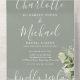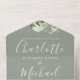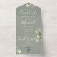 Le tout dans un faire-part de mariage à la jolie végétation fleurie, noms de style signature et typographie chic sur un arrière - plan vert sage. L'invitation comprend une carte RSVP perforée avec votre code QR du site Web mariage. Conçu par Thisisnotme©