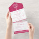 Apportez une touche d'élégance à votre événement grâce à cette carte tout-en-un de faire-part de mariage et RSVP. À l'intérieur, vous trouverez un coeur de tissage celtique blanc sur un arrière - plan de framboise brillant au-dessus d'une section avec un exemple de texte qui peut être customisé pour votre journée spéciale. La partie inférieure de l'invitation est constituée d'une pièce amovible de taille carte postale qui contient un échantillon de texte RSVP placé au-dessus d'une bordure rose framboise avec un motif de tissage celtique composé de coeurs entrelacés décorant le fond. À l'extérieur, on trouve une bordure Celtique semblable sur la framboise sous les zones où vous ajouteriez des timbres, des normes et des adresses de retour pour l'invitation dans son ensemble et la section RSVP consignée. Le rabat utilisé pour plier et sceller la carte a le plus grand coeur de tissage celtique sur un arrière - plan rose vif avec un échantillon d'initiales que vous pouvez customiser pour une touche personnelle finale. N'oubliez pas de consulter le reste de l'ensemble Celtic Weave Hearts in Raspberry pour d'autres produits de coordination, y compris les étiquettes d'adresse de retour.