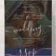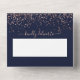 Confettis en or rose carte d'invitation de mariage bleu marine avec réponse, hébergement, détails et plus d'informations. Avec une écriture moderne et tendance. Ajoutez votre photo.