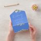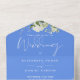 Le tout dans un faire-part de mariage avec des feuilles botaniques de verdure rustique, et d'élégante typographie sur un arrière - plan bleu cornflower. L'invitation comprend une carte RSVP perforée avec un code QR. Conçu par Thisisnotme©