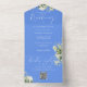 Invitation Tout En Un Cornflower Blue Greenery QR Code Monogramme Mariag
