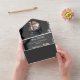 J'ai bien reçu ma commande tout et était parfait jusqu'à se que je retourne mon faire part il on pas cadré le papier à l'impression. Je pensé que c'était de ma faute, mais sur ma réalisation sa n'apparaît pas, j'avais fait faire 1 seul prototype pour essayer, on aime beaucoup le style, la matière... j'aimerai bien recommander mais pas avec ce petit défaut. .