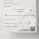 Profitez du charme rustique et de l'élégance intemporelle de votre prochain mariage avec cette faire-part de mariage tout-en-un de marguerite de campagne exquise. Cette invitation soigneusement conçue allie commodité et un design simple aquarelle de campagne marguerite pour créer une première impression inoubliable pour vos invités. Les invitations de mariage tout-en-un sont à la fois belles et pratiques en combinant le faire-part de mariage avec une carte postale RSVP perforée facile à enlever. Ils sont aussi rapides et faciles à préparer pour l'envoi. Adressez-vous simplement à l'invitation, pliez le rabat arrière et scellez avec les autocollants clairs inclus. Une fois que vos invités reçoivent l'invitation préadressée, ils arrachent simplement la carte perforée RSVP et la déposez dans le courrier. L'ajout du code QR permet à vos invités d'accéder facilement à votre site mariage pour obtenir des informations, notamment les détails de la réception et les choix de dîner !