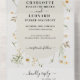 Elégante Faire-part de mariage Fleur sauvage avec fleurs sauvages et marguerite. Il comprend invitation, instructions rsvp avec code Qr ou email et détails.