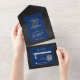 Invitation Tout En Un Dark gothique noir & bleu Floral Satin Code QR