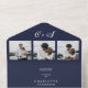 Invitation Tout En Un Décontracté bleu marine initiales photo mariage