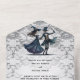 Un mariage gothique tout en une invitation avec un couple de squelettes dansant, avec la pleine lune sur le dos, sur un arrière - plan grunge en dentelle sombre. La carte comprend également des options de choix de repas pour les invités à choisir parmi, et votre invité peut scanner le code à RSVP, ou envoyer la carte par la poste régulière. Parfait pour un élégant mariage gothique d'Halloween. Sur le devant, la conception comprend un monogramme et la date de votre mariage. Suivez les instructions pour personnaliser l'invitation avec vos coordonnées de mariage. Préparez à l'avance le libellé dans un document séparé, puis copiez et collez les informations. ← ← Pour les articles correspondants, veuillez consulter ma collection gothique. Pour les questions et les ordres spéciaux, envoyez un message via Zazzle Conversation. Merci!