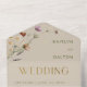 ÉGALEMENT DISPONIBLE AVEC UN CODE QR À ANALYSER. Ce design présente des bouquets fleurs sauvages de tonalité terre sur un arrière - plan bronzé. Simple, moderne et élégant. Les invitations tout-en-un personnalisées sont une combinaison unique d'une invitation personnalisée magnifiquement imprimée et d'une carte postale RSVP perforée facile à déchirer. Et ils sont si faciles à utiliser ! Il suffit de plier, puis de sceller le rabat arrière avec les trois autocollants clairs inclus, et le courrier. Et quand vos invités reçoivent votre invitation personnalisé, ils déchirent la carte RSVP perforée et vous la remettent dans le courrier !