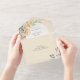 DISPONIBLE ÉGALEMENT AVEC UN CODE QR À ANALYSER DANS LA ZONE RSVP. Ce design présente des fleurs couleur crème, jaune et vanille, entourant un cadre ovale sur un arrière - plan crème doux. Les invitations tout-en-un personnalisées sont une combinaison unique d'une invitation personnalisée magnifiquement imprimée et d'une carte postale RSVP perforée facile à déchirer. Et ils sont si faciles à utiliser ! Il suffit de plier, puis de sceller le rabat arrière avec les trois autocollants clairs inclus, et le courrier. Et quand vos invités reçoivent votre invitation personnalisé, ils déchirent la carte RSVP perforée et vous la remettent dans le courrier !