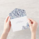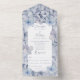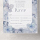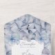 Cette conception comprend des fleurs d'hydrangée bleue à grande échelle, à périvent, entourant une zone de texte blanche. Les invitations tout-en-un personnalisées sont une combinaison unique d'une invitation personnalisée magnifiquement imprimée et d'une carte postale RSVP perforée facile à déchirer. Et ils sont si faciles à utiliser ! Il suffit de plier, puis de sceller le rabat arrière avec les trois autocollants clairs inclus, et le courrier. Et quand vos invités reçoivent votre invitation personnalisé, ils déchirent la carte RSVP perforée et vous la remettent dans le courrier !