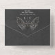 DISPONIBLE AVEC OU SANS CODE QR À SCANNER DANS LA ZONE RSVP OU AVEC OU SANS OPTIONS DE REPAS. Nous vous présentons notre invitation de mariage unique et captivante inspirée du style gothique, où l'élégance rencontre le mystère de la nuit. Sur un fond noir en détresse, le texte de style gothique blanc dégage un charme et une sophistication intemporels. En haut, un papillon à ailes ouvertes simple mais époustouflant, rappelant le style architectural gothique, ajoute une touche intrigante et enchanteresse à l'aile extérieure avant et arrière. Préparez-vous à captiver vos invités avec une invitation qui les transporte dans un monde de romance sombre et d'allure. Le papillon symbolise la transformation et l'évolution de l'amour, tandis que le design gothique prépare le terrain pour un mariage à la fois classique et mystérieux, et qui célèbre la beauté unique de votre histoire d'amour. Avec cette invitation vraiment captivante, votre mariage brillera d'une élégance qui laisse une impression durable sur tous ceux