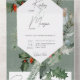 IL EST ÉGALEMENT DISPONIBLE AVEC UN CODE QR À ANALYSER DANS LA ZONE RSVP OU SANS OPTIONS DE SÉLECTION DE DÎNER. Ce design faire-part de mariage présente un cadre magnifique de pin d'hiver, saint, eucalyptus et d'autres verdure avec des baies sèches rouges. L'arrière - plan est un vert sage doux qui est affligé de blanc. Créé par Simply Farmhouse Press.