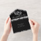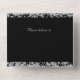 Ce design romantique présente un élégant arrière - plan noir avec des bordures de parties scintillant, un coeur argenté délicat entrelacé, détails de l'événement dans un script élégant. Aussi disponible avec différents arrière - plans de couleur pour vos couleurs mariages. (La Parties scintillant est simulée dans l'illustration). Conçu pour coordonner avec la collection Mariage "Two Shall Become One - Hearts, Doves & Parties scintillant". Pour modifier les détails, cliquez sur "Personnaliser". Pour déplacer le texte ou modifier la taille, la police ou la couleur du texte, cliquez sur "Cliquez pour customiser plus loin"