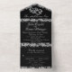 Invitation Tout En Un Double Coeur & Parties scintillant - Noir
