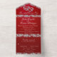 Invitation Tout En Un Double Coeur & Parties scintillant - Rouge Crimson