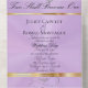 This romantic design features an elegant lavender pearl background, delicate silver hearts intertwined, details for the event in elegant script. Also available with different colored backgrounds for your wedding theme colors. (Ribbon is simulated in the artwork). Designed to coordinate with the "Two Shall Become One - Silver & Gold" Wedding Collection. To change details, click «Personalize». To move the text or change the text size, font, or color click «Click to customize further»