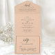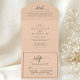 Cette invitation tout-en-un présente un fond doux pêche associé à une police de caractères moderne, dégageant une élégance minimaliste. Le design clair et facile à lire garantit que vos invités reçoivent toutes les informations essentielles pour votre célébration de mariage.