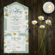 Les marguerites simples du pays dégagent un sentiment de beauté et d'innocence naturelles, symbolisant la pureté et la joie de votre amour. Dans un cadre verdoyant et apaisant, ils créent une scène pittoresque qui saisit l'essence d'un mariage de campagne serein. Les invitations de mariage tout-en-un sont à la fois belles et pratiques en combinant le faire-part de mariage avec une carte postale RSVP perforée facile à enlever. Ils sont aussi rapides et faciles à préparer pour l'envoi. Adressez-vous simplement à l'invitation, pliez le rabat arrière et scellez avec les autocollants clairs inclus. Une fois que vos invités reçoivent l'invitation préadressée, ils arrachent simplement la carte perforée RSVP et la déposez dans le courrier.