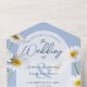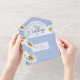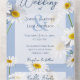 Invitation Tout En Un Doux marguerites sur bleu pâle avec code QR