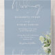Invitation Tout En Un Dusty Blue Floral String lights QR Code Mariage