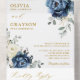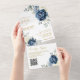 Invitation Tout En Un Dusty Blue Navy Champagne Ivory Mariage QR Code