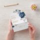 Faire-part de mariage à code QR floral bleu Dusty avec élégant bouquet de bleu marine, bleu royal, blanc, or, ivoire de champagne, rose couleur rousse, bourgeons de fleurs ranunculus et sauge vert eucalyptus feuilles et élégant bouquet d'aquarelle. Veuillez me contacter pour toute aide sur la personnalisation ou si vous avez besoin d'un autre produit avec ce design.