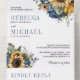 Invitation Tout En Un Dusty Blue Roses Sunflowers QR Code Wedding