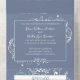 Invités d'Invitations à votre prochain mariage avec une invitation de mariage Dusty Blue Flourish All in One. Le design Invitation présente une floraison feutrée élégante avec un arrière - plan coloré assorti avec une carte de réponse perforée. Personnalisez avec les noms du marié et de la mariée ainsi que la date et l'emplacement du mariage. Papier à lettres mariage supplémentaire disponible avec cette conception aussi.