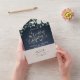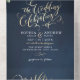 Faux d'or moderne "la célébration mariage de" calligraphie et aquarelle blanc fleuri eucalyptus verdure sur bleu marine foncé arrière - plan, élégant et élégant, idéal pour mariage rustique verdure, mariage botanique de jardin, boho mariage fleuri en été et en hiver. Voir toutes les pièces correspondantes dans la collection.
