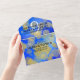 Faites du 9e anniversaire du mariage lapis lazuli une fête inoubliable avec ces invitations tout-en-un commémoratives! Des lettres noires et blanches élégantes avec des confettis hexagonaux patinés en pyrite sur des arrière - plans azurés, bleus et noirs, ajoutent une touche mémorable à cette occasion spéciale et à cette étape importante. Customisez avec les noms du couple heureux, la date du lieu de célébration, l'adresse et l'heure, ainsi que les adresses postales de l'adresse et du destinataire. Design © W.H. Sim. Voir plus sur zazzle.com/expressionsoccasions