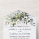 Elégante aquarelle moderne Botanical Greenery Mariage All In One Invitation avec la carte RSVP comprend des feuilles d'eucalyptus, le feuillage botanique vert, feuilles bleus poussiéreux et d'autres belles verdure botanique. Bleu roux.