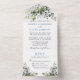 Invitation Tout En Un Elégant Aquarelle Verdure Dusty Blue Mariage