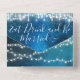 OPTIONS POUR l'adressage : utilisez le étiquette de adresse, commandez des enveloppes en choisissant cette option sur cette page ou vous pouvez également ajouter l'adresse en cliquant sur customiser plus en bas de la fenêtre contextuelle/déroulante "Personnaliser ce Modèle". Sur cette conception, vous devez utiliser un rectangle comme espace réservé pour voir clairement l'adresse. Après avoir placé vos deux rectangles dans les emplacements appropriés (positionnez vos rectangles en faisant glisser et/ou utilisez l'outil Aligner en haut de l'outil de conception) pour le centre d'adresse du client au milieu de la couche centrale externe. Pour ajouter des adresses, consultez l'OUTIL "AJOUTER DU TEXTE" en haut à gauche de l'écran. Ajoutez du texte et positionnez-vous sur vos rectangles en faisant glisser ou utilisez l'outil Aligner en haut de l'outil de conception. Pour le centre d'adresse de l'invité au milieu de la couche centrale externe. Après avoir placé vos premières adresses (adresses de retour et d'invité) dans les endroits appropriés suivez les instructions suivantes pour les adresses d'invités : Adressez chaque invitation à vos invités individuellement et, après avoir entré l'adresse unique de chaque invité, ajoutez au panier, puis cliquez sur le lien dans votre panier pour revenir à la page produit pour entrer l'adresse du prochain invité ; ajoutez au panier à nouveau et répétez jusqu'à ce que toutes vos invitations soient adressées. Vous verrez chaque carte séparément dans votre panier. Veuillez relire chaque adresse avant de passer commande. Pour la relecture, il suffit de cliquer sur le lien pour chaque carte de votre panier. De même, vous pouvez facilement faire votre correction d'épreuves en cliquant sur le bouton de retour à la page du produit, avant d'ajouter l'adresse suivante. L'adresse de retour n'a besoin d'être ajoutée qu'une fois, puis apparaîtra lorsque vous cliquez sur le lien dans votre panier. Tout En Un Éteint Les Invitations De Mariage RSVP. Boho Fairytale String Lights Fairy Lights et Mason Jars Enchantées Stars Blue Mint Green et Turquoise Aqua Blue Romantic Tree avec Initiales dans Trunk Wedding Invitations. Comprend une carte postale facilement détectable RSVP. Idéal pour le Secret Magical Fairy Tale Garden Woodsy Forest Boho Bohemian Woodland ou Farmhouse Grange Jardin rustique Élégant String Lights Country Chic Mason Jar Thèmes Mariages.