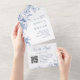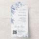 Invitation Tout En Un Elégant bleu France Garden Flowers Mariage code QR