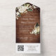 Invitation Tout En Un Elégant bois rustique blanc Roses Mariage QR code