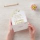 Cette belle faire-part de mariage est élégante, intemporelle et classe. Le design or et blanc élégant présente des boucles et des tourbillons dorés ornés de faux feuillages dorés avec des lettres de script fantaisie. Le design tout-en-un comprend une carte postale rsvp détachée, ce qui facilite la réponse de vos invités.