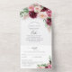 Invitation Tout En Un Elégant Bourgogne rose Blush Floral Mariage espagn