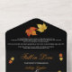Cette élégante invitation mariage de automne est parfaite pour un mariage d'automne moderne. Le design simple présente des feuilles d'érable avec une élégante typographie blanche et orange sur un arrière - plan noir.