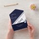Cette élégante faire-part de mariage bleu marine est parfaite pour un mariage moderne. le design simple comprend une élégante calligraphie blanche sur un arrière - plan bleu.