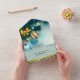 Elegant all in one tear-away Christmas holiday party invitation featuring a festive pine tree branch with baubles and sparkling lights.