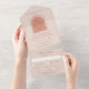 Cette élégante faire-part de mariage tout-en-un est dotée d'un arrière - plan en terre cuite neutre et léger, d'une illustration à la main et d'une typographie d'inspiration vintage. Il suffit de le sceller puis de l'envoyer - Pas besoin de commander des enveloppes! Ce design serait un choix fabuleux pour un printemps, un été ou un mariage de automne. Consultez la collection pour la coordination des articles !