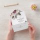 Unique tout en une invitation présente de beaux fleurs sauvages d'aquarelle dans les tons bordeaux, rose vif, crème et blanc.