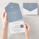 Invitation Tout En Un Élégant Floral Dusty Blue Monogram QR Code Mariage