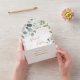 Design feature greenery eucalyptus watercolor with floral gold glitter elements. Using elegant calligraphy font in gold color for the name of the bride and groom that makes it stand-out.